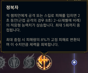정복자 룬이 등장 후에 지속적으로 너프를 당하고 있는데, 일단 현재 정복자 스킬을 살펴보자.