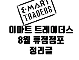 이마트트레이더스 8월 휴점점포 안내 점포별로 다르기 혼동 없으시길 바랍니다! 구성점 8월12일(일요일) , 26일(일요일) 송림점 8월12일(일요일) , 26일(일요일) 월평점 8월12일(일요일) , 26일(일요일) 서면점 8월12일(일요일) , 26일(일요일) 비산점 8월12일(일요일) , 26일(일요일) 천안점 8월12일(일요일) , 26일(일요일) 양산점 8월12일(일요일) , 26일(일요일) 수원점 8월12일(일요일) , 26일(일요일) 군포점 8월12일(일요일) , 26일(일요일) 안산점 8월10일(금요일) , 26일(일요일)킨텍스점 8월8일(수요일) , 22일(수요일)하남점 8월8일(수요일) , 22일(수요일)고양점 8월8일(수요일) , 22일(수요일)김포점 8월8일(수요일) , 22일(수요일)