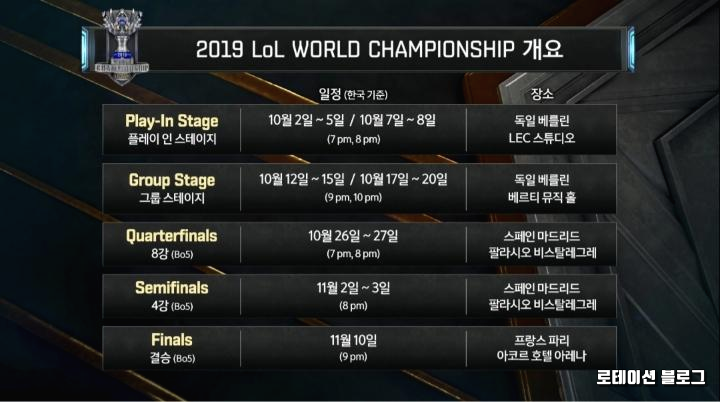 | 2019 롤드컵 경기 전체 세부 일정 (LOL 월드챔피언십) (0) | 2019.10.04 |
