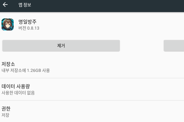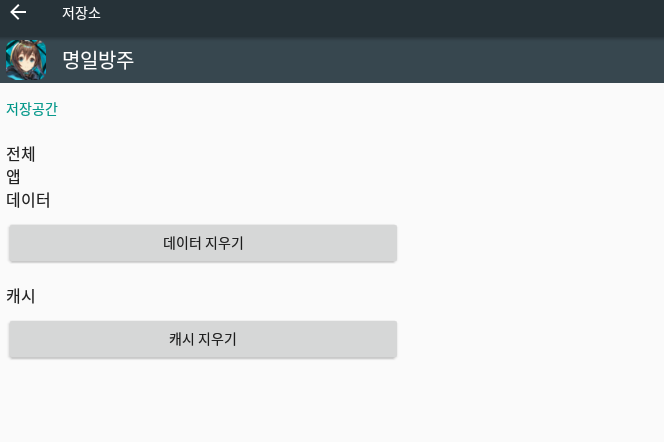 설정 -> 애플리케이션 -> 명일방주 -> 저장소 -> 데이터 지우기