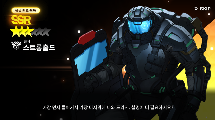 스트롱홀드 - 기본으로 얘를 포함시키고 리세를 해야한다. 헬멧쓰고있는데 손에 치킨도 안들고 있으니 거부감이 들겠지만, 그냥 뽑자.