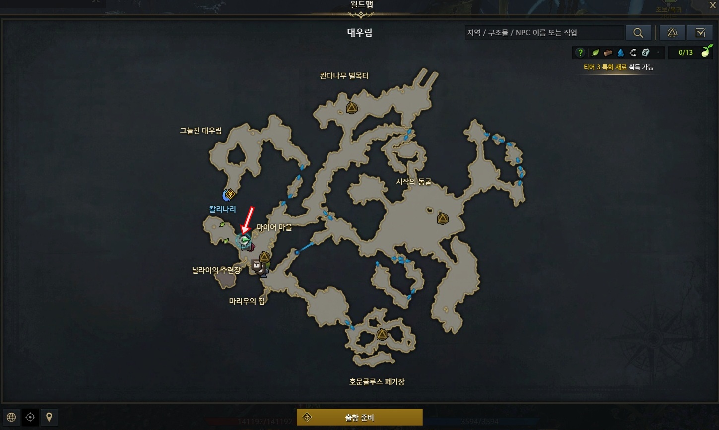 빨간색 화살표 위치로 이동해 주시고, 해당위치에서 '일리카'라는 아이에게 말을 걸어주세요
