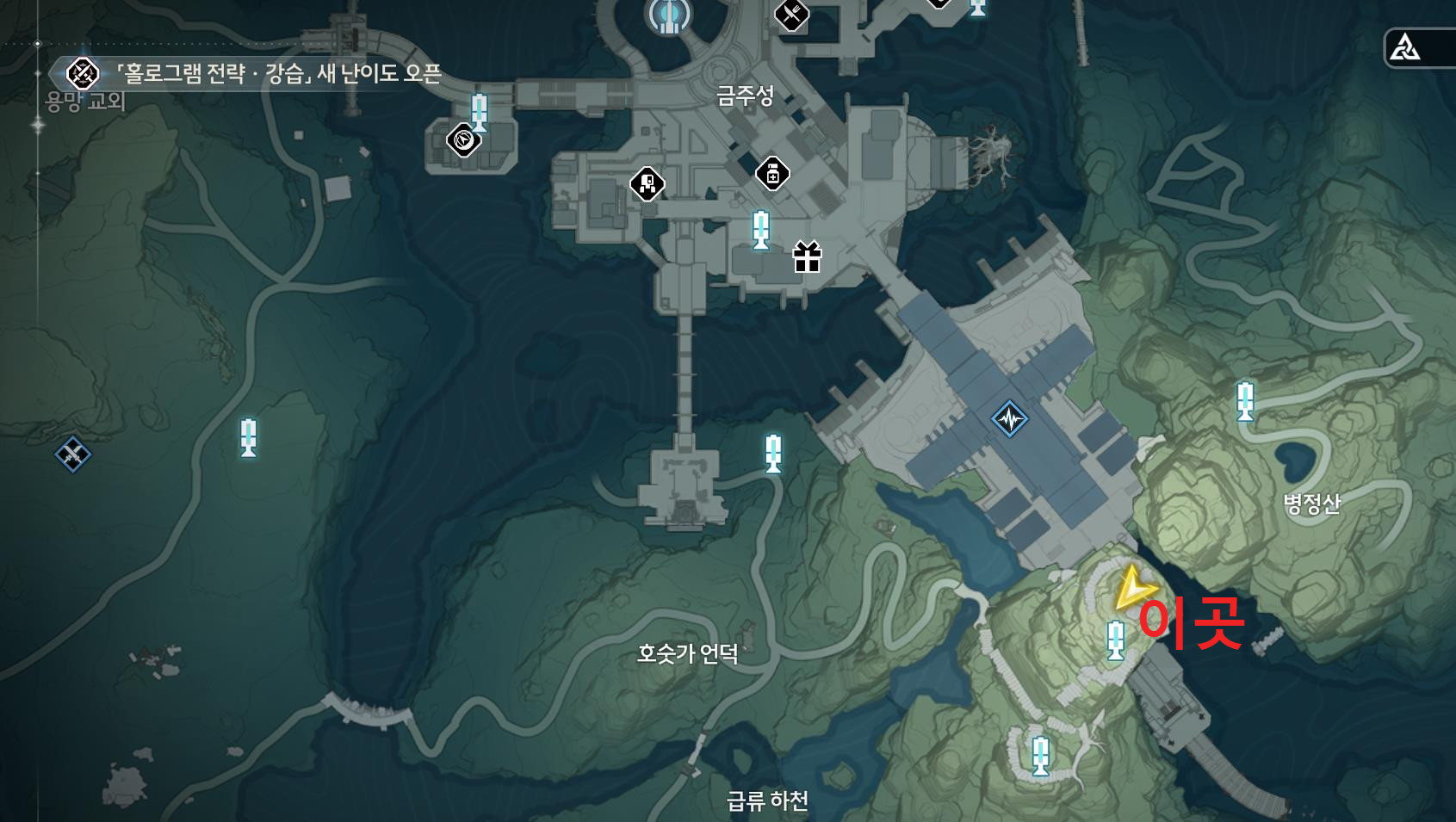 월드맵을 여시고 금주성 쪽 아래 텔레포트를 타주세요!
